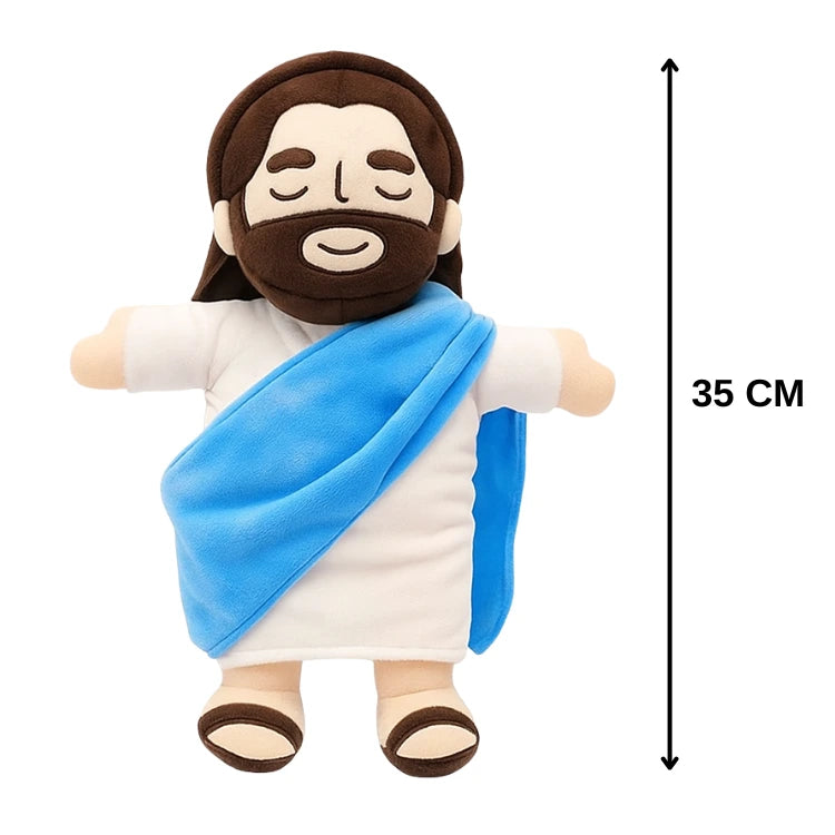 Si tus noches se sienten solitarias o te cuesta relajarte antes de dormir, este peluche de Jesús te envuelve en un abrazo suave y reconfortante. Su respiración ayuda a aliviar la ansiedad y llenar tu descanso de paz.
